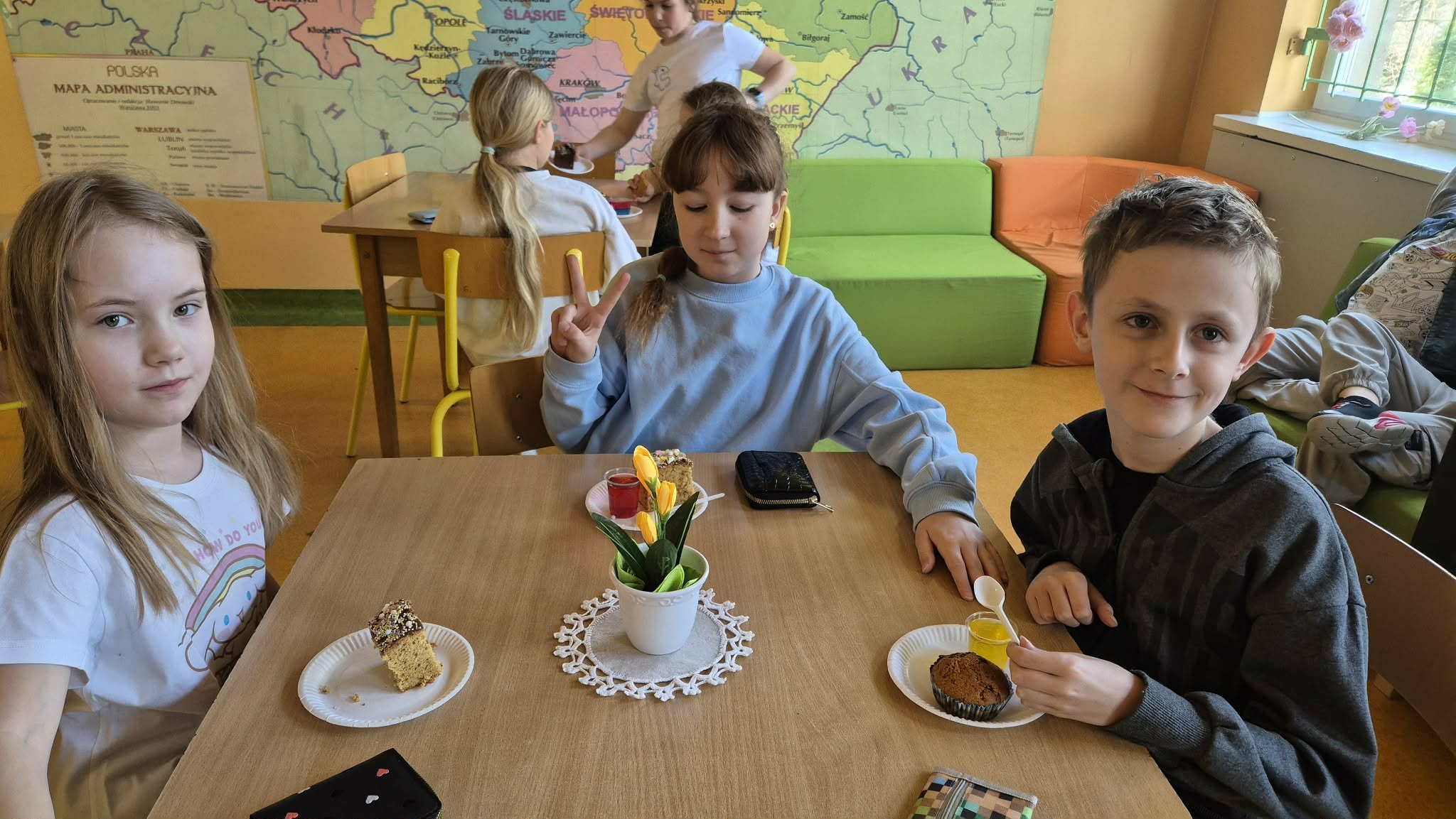 Ależ to było słodkie powitanie wiosny! Jak co roku, Kawiarenka Wagarowicza gościła uczniów i nauczycieli. Był czas na degustację oraz wspólne rozmowy. Serdecznie dziękujemy Rodzicom za przygotowanie pysznych ciast, ciasteczek i kolorowych galaretek.